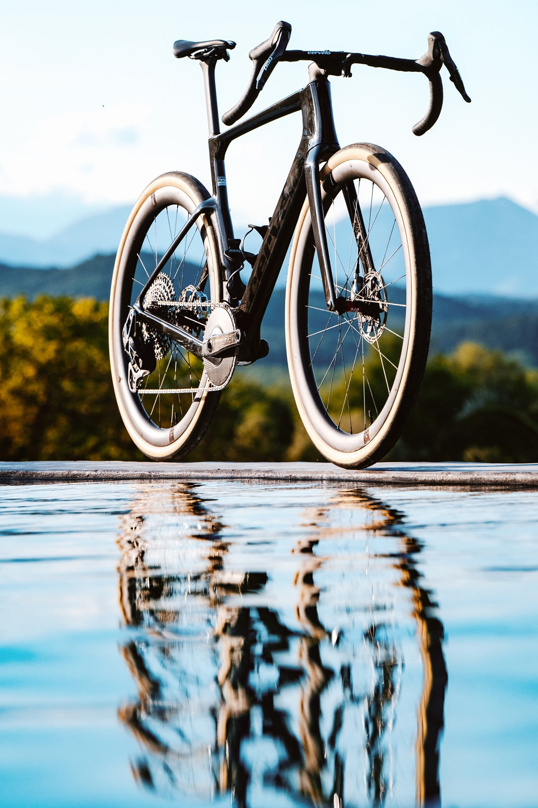 When fitted with equally-sized tires (e.g. 42mm front and rear), Áspero-5’s handling is stable, confidence-inspiring, and ready for the roughest courses. To increase aerodynamics even further, and sharpen handling for less-technical courses, we optimized the geo for a 4mm tire width differential (e.g. 40mm front, 44mm rear).