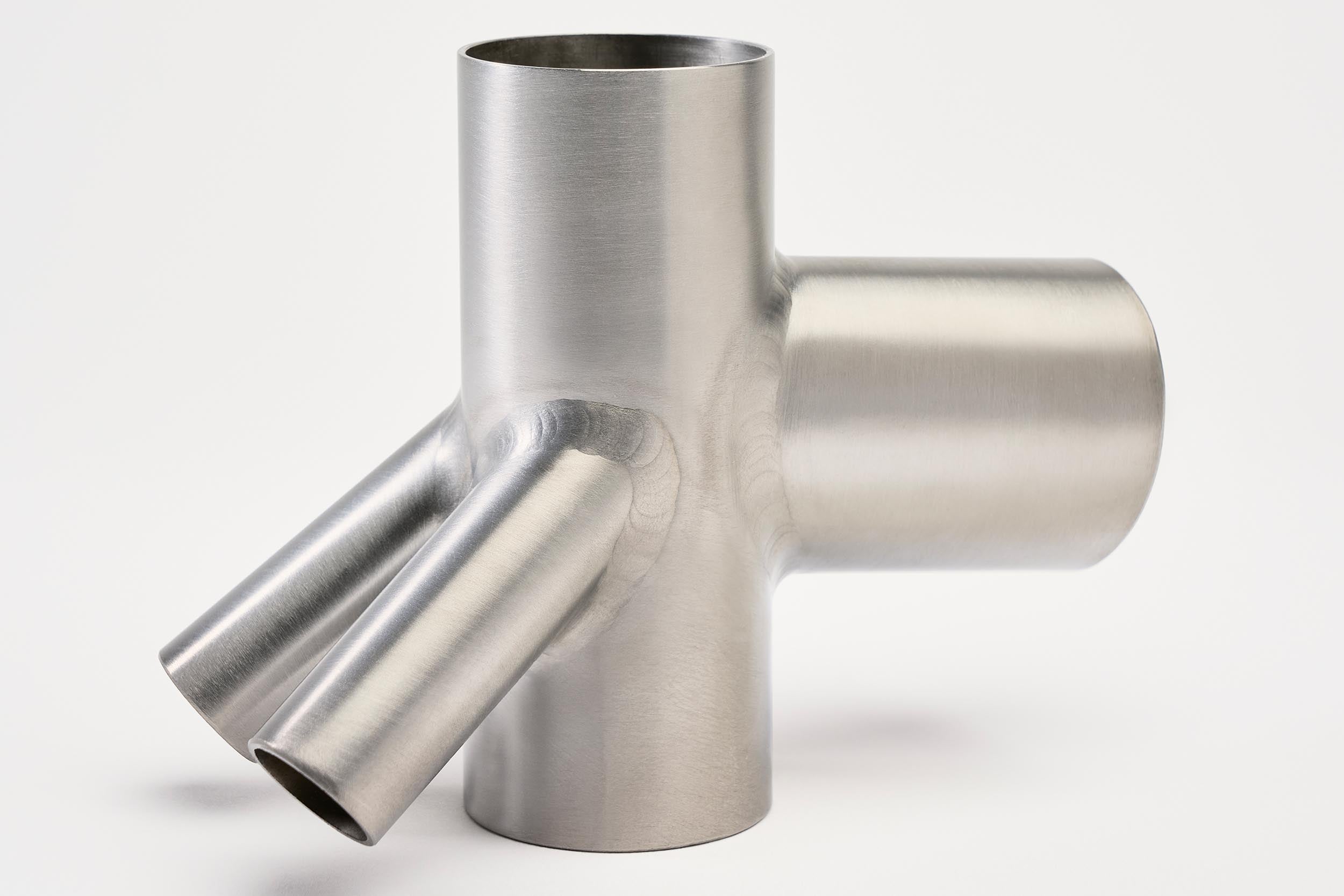 Welding joints and tubes glazed by hand, graphics applied directly on the tube in titanium by sandblast.