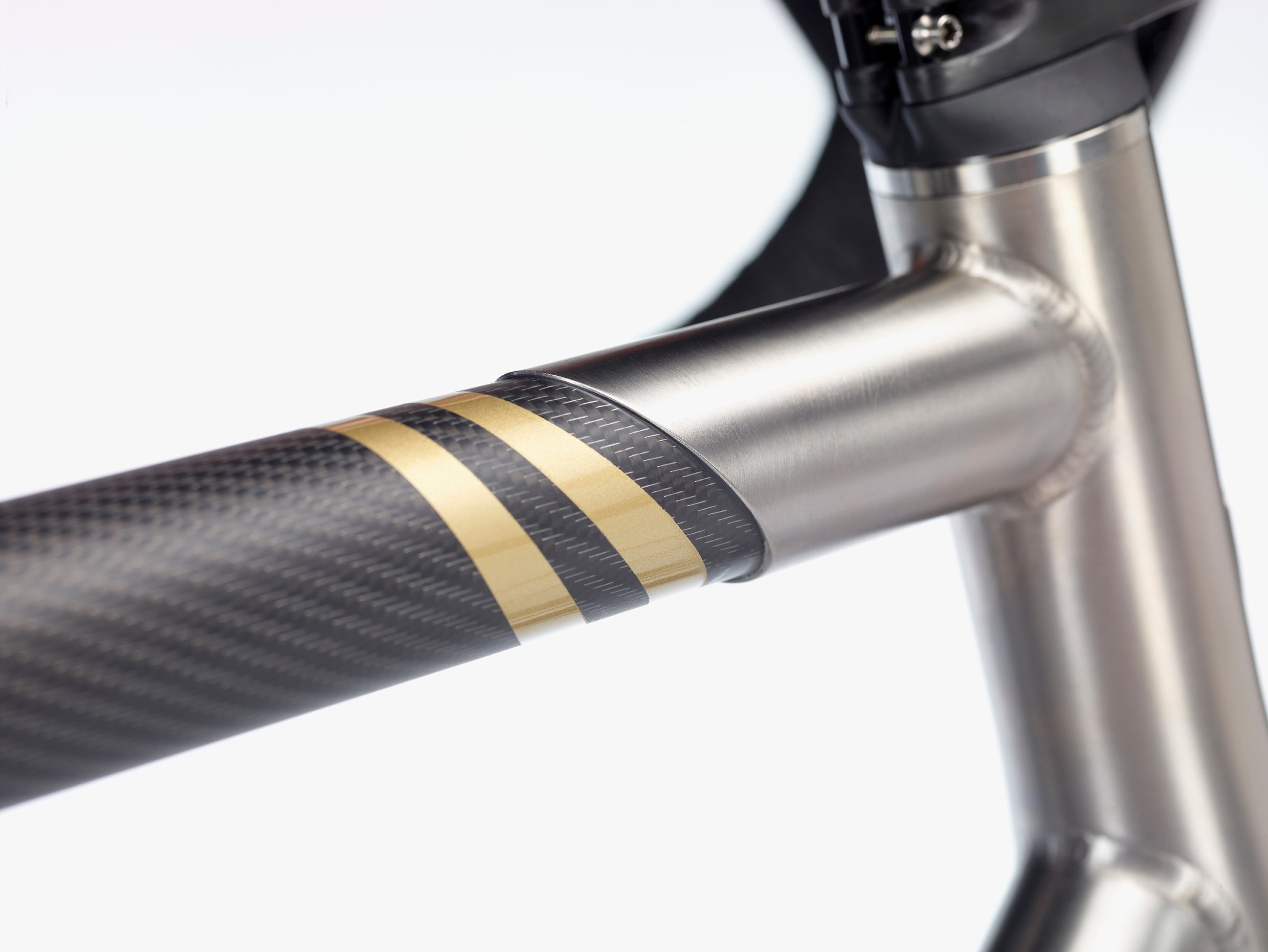 Carbon-titanium horizontal tube Ø 35mm, carbon-titanium seat tube Ø 35mm, titanium down tube Ø 42mm.