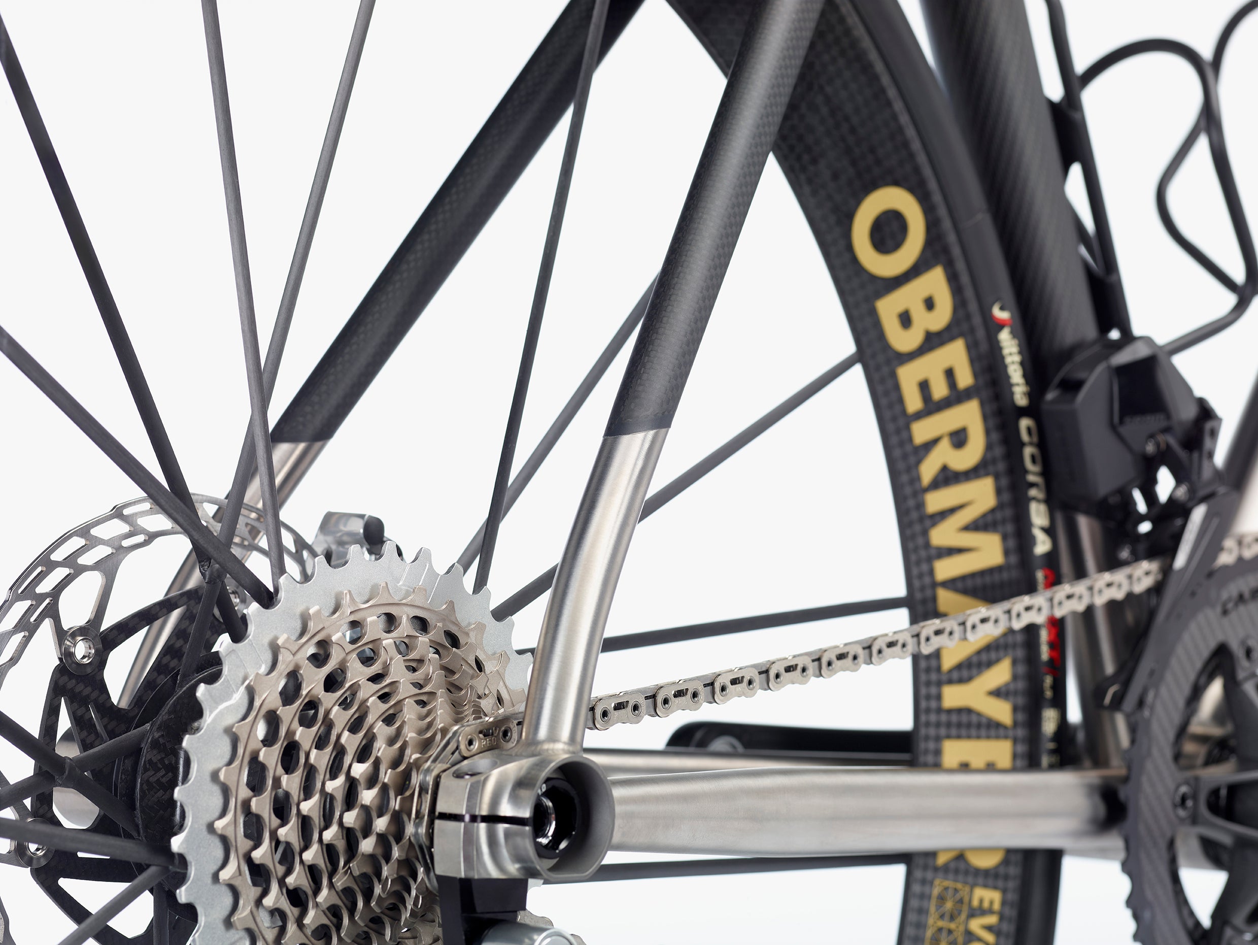 Aero Carbo-Titanium Seatstays Ø 21x24mm, Titanium Chainstays 21 x 27 mm.