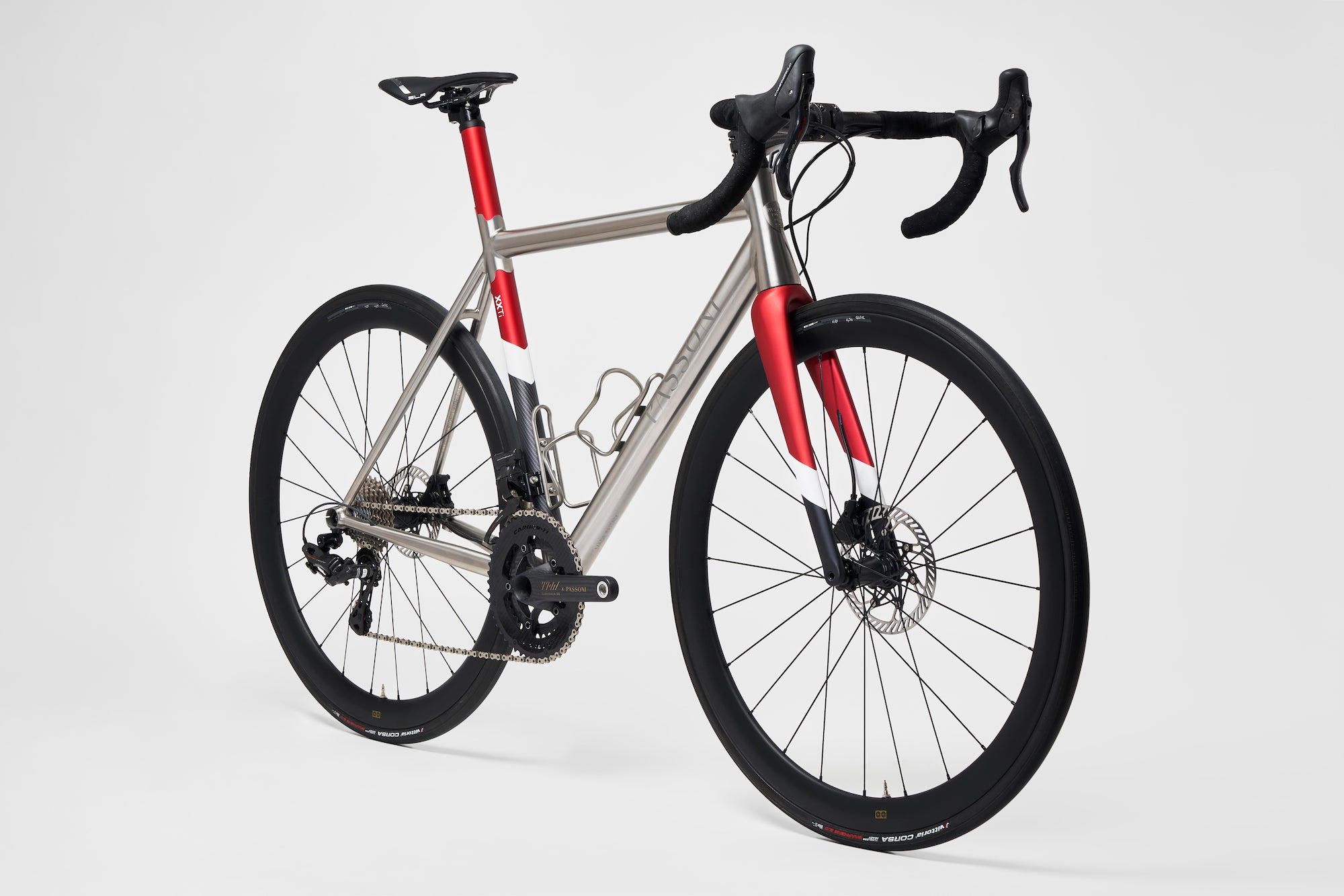 With both titanium and carbon as a canvas, the finishing of the XXTi Disco allows its owner’s imagination to run riot. With a wide variety of choices covering both painted and polished treatments, it offers among the most creative potential of any Passoni bicycle.